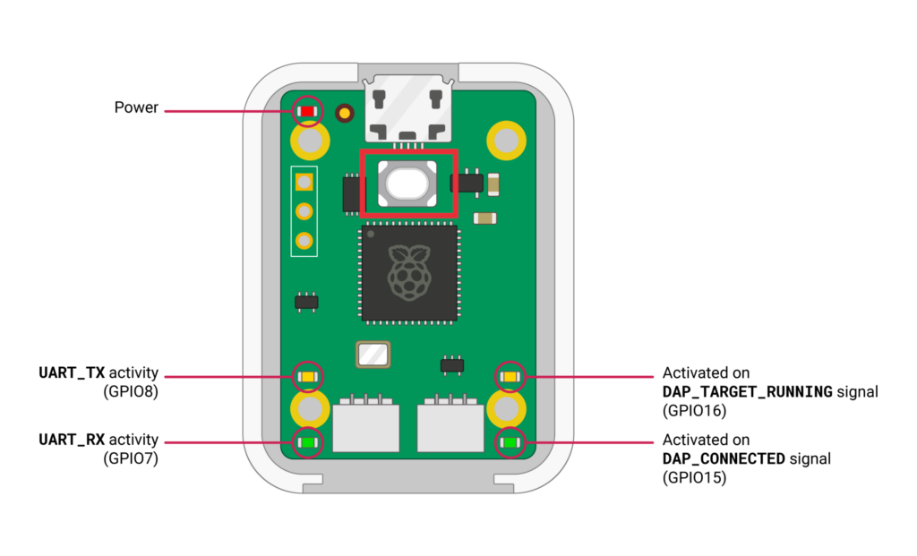 - Debugprobe hardware에도 BOOTSEL 버튼이 있는데 이것을 누른채로 USB를 연결하면 디스크가 마운트된다.