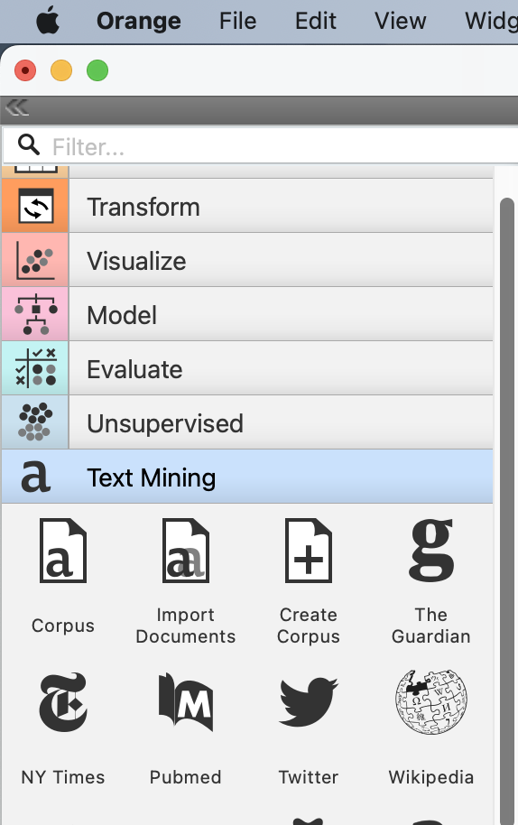 이제, Orange3를 재실행하고 Text add-on을 추가하면 오류없이 설치되어 사용할 수 있다.