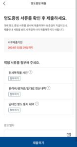이사예정일 하루 전이 되자 HUG에서 보증금이 입금될 예정이라는 카톡이 왔다. 저녁 6시 이후에 안심전세 앱에서 “명도증빙자료제출”을 누르니 자료를 올리는 화면이 나왔다.