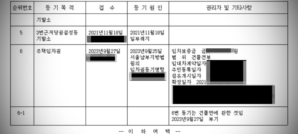 10월 5일(D+23): 임차권 등기 완료