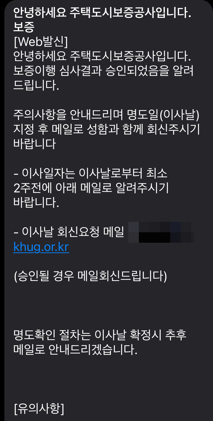 HUG로 부터 담당자가 배정되었다는 문자 메세지를 받았다.
