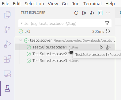 VSCode의 Test Explorer에 test case들을 표시하면 귀찮은 파라미터 입력 없이도 특정 테스트케이스를 실행하거나 디버그할 수 있어서 여러모로 편리한 점이 많다. 하지만 GTest로 작성한 C++ 테스트케이스들은 자동으로 discover되지 않아서 약간의 설정을 해주어야 한다. 복잡한 것은 아니고 아래와 같이 GTest에서 제공하는 CMake 함수인 gtest_discover_tests()를 이용하면 된다.